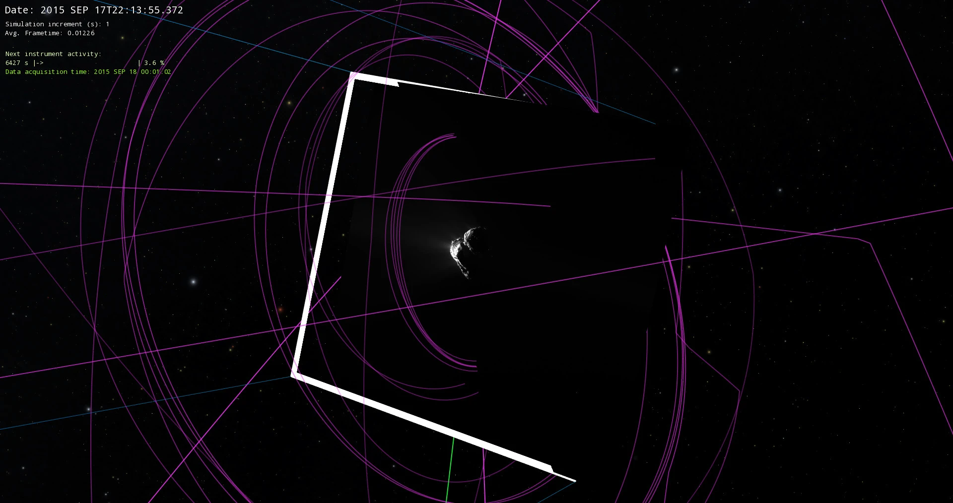 After the image projections that were performed with the camera of the New Horizons space craft, we focussed ourselves towards visualizing ESA’s Rosetta mission around the comet 67P/Churyumov–Gerasimenko.